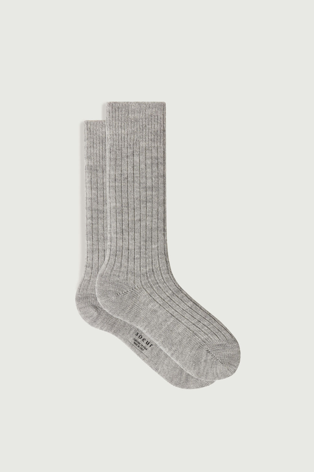 CASSIS is a pair of chunky ribbed socks that combine comfort and style, knitted from merino yarn. Ideal for wearing with boots or mid-season shoes.