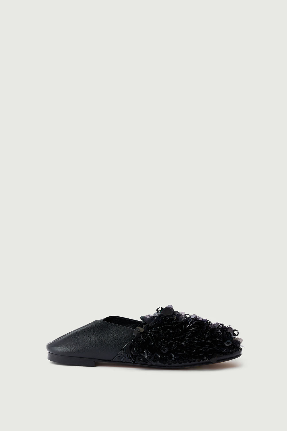 Black leather and embroidered sequin loafers