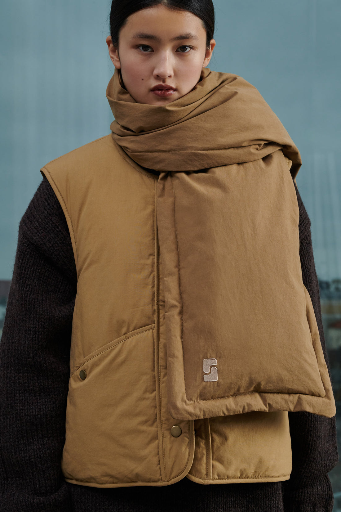 Water-repellent peached cotton padded scarf beige
