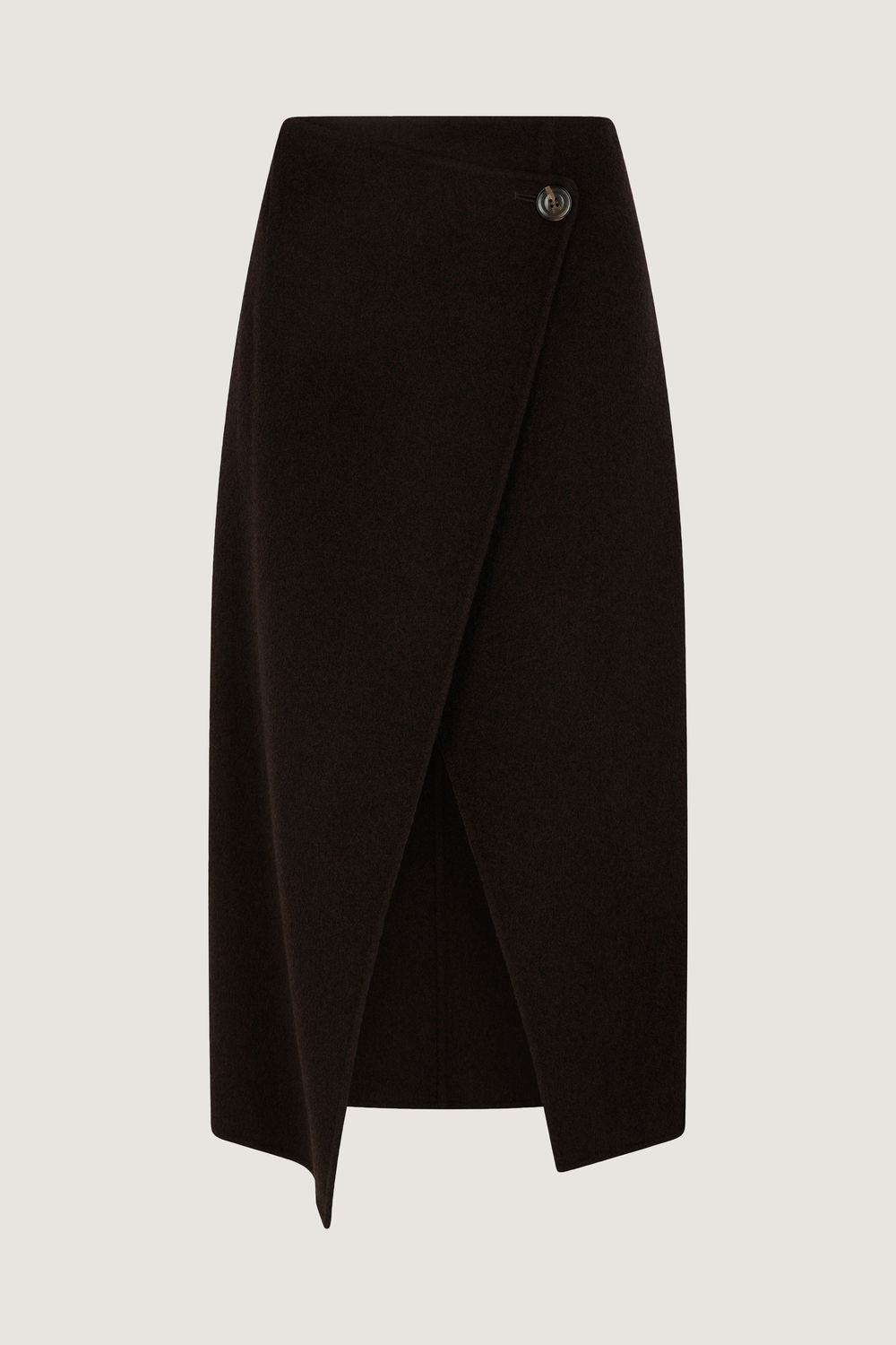 Asymmetrical double-sided wool wrap skirt mottled brown