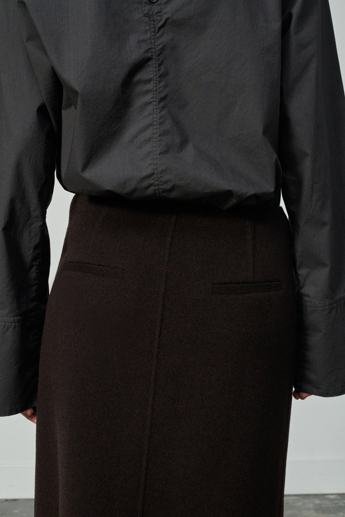 Asymmetrical double-sided wool wrap skirt