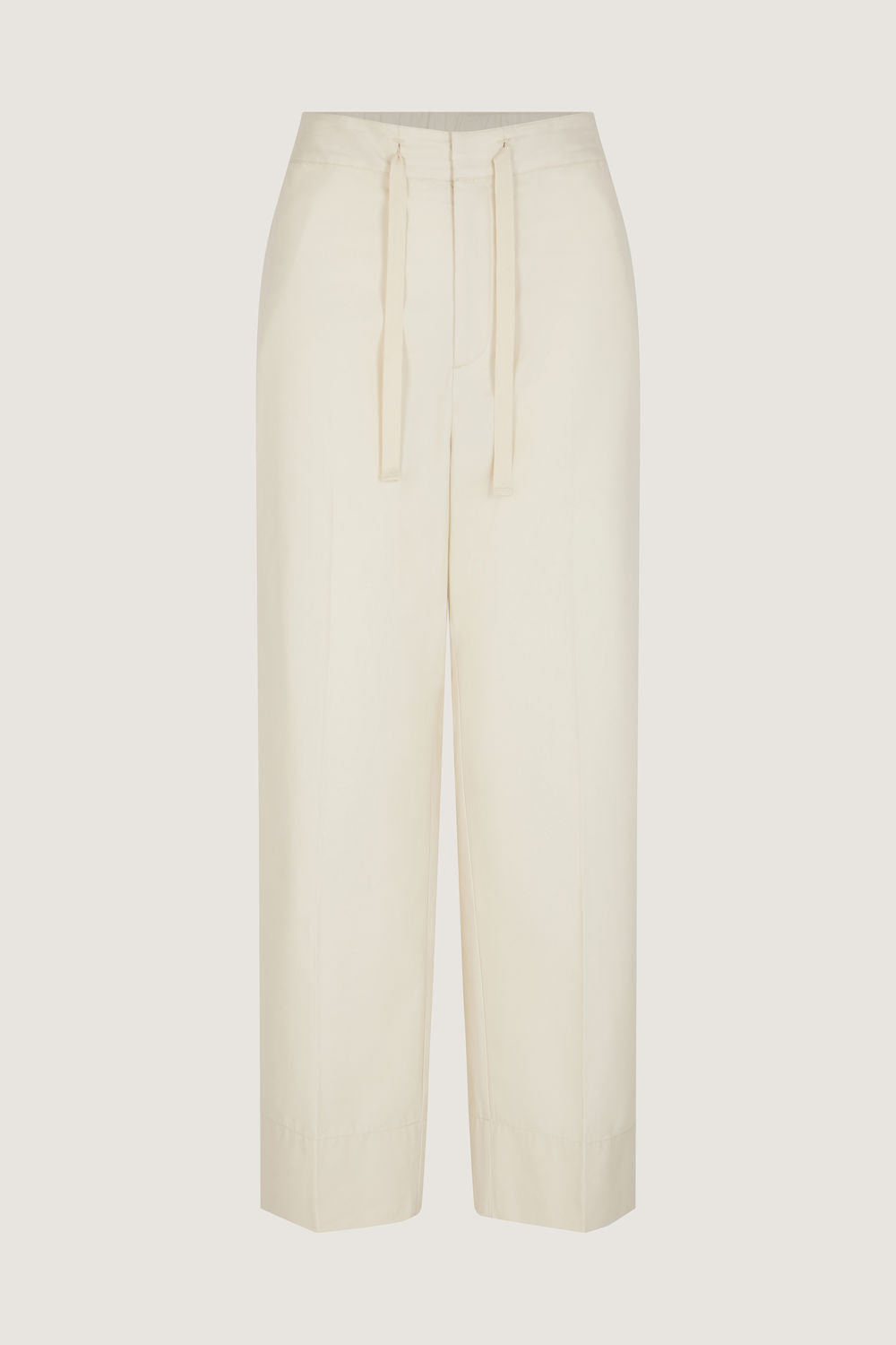 Elasticated waist trousers in cotton and silk fabric off-white