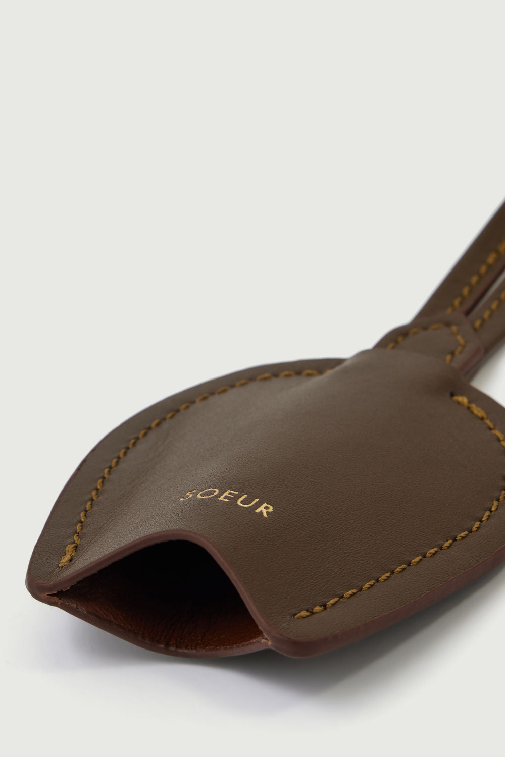 - Two-tone taupe/cognac leather keyring