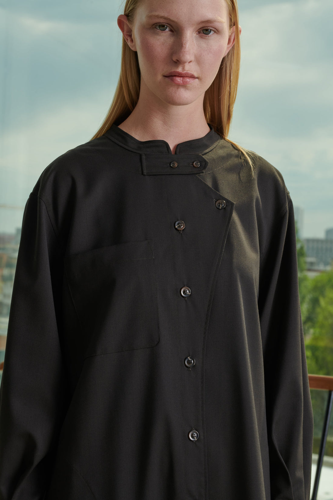 - Asymmetrical front button fastening